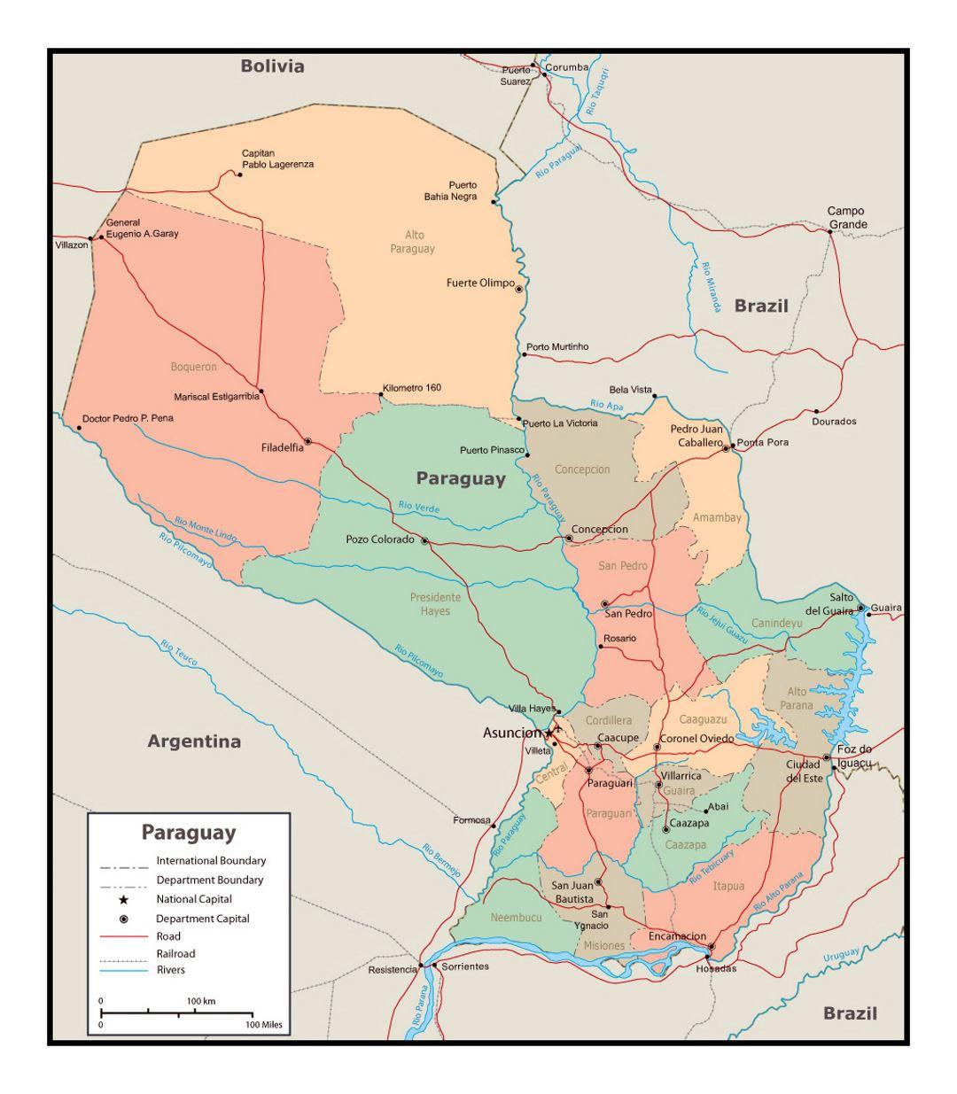Map of Paraguay with cities